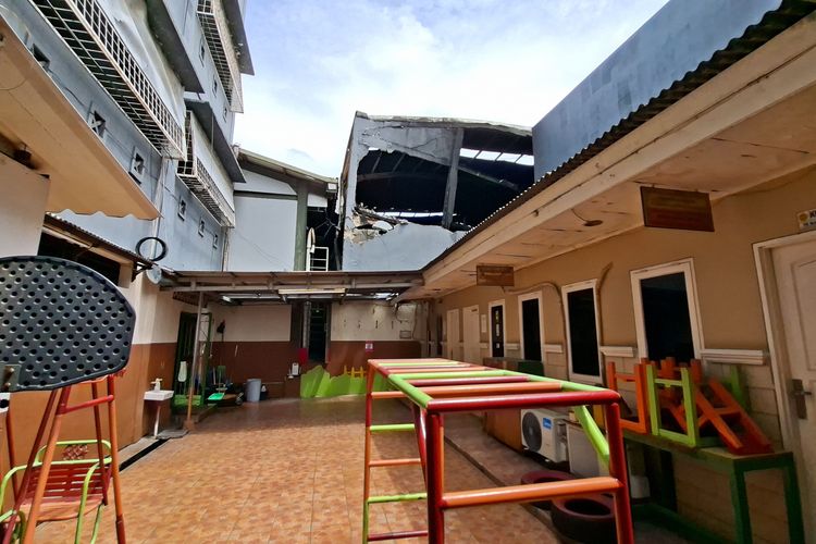 Michael, guru TK Cendrawasih Yayasan Pancaran Kasih menyebut kerusakan pada atap ruang kelas itu merupakan imbas dari puing tembok saat ledakan di dalam bengkel.